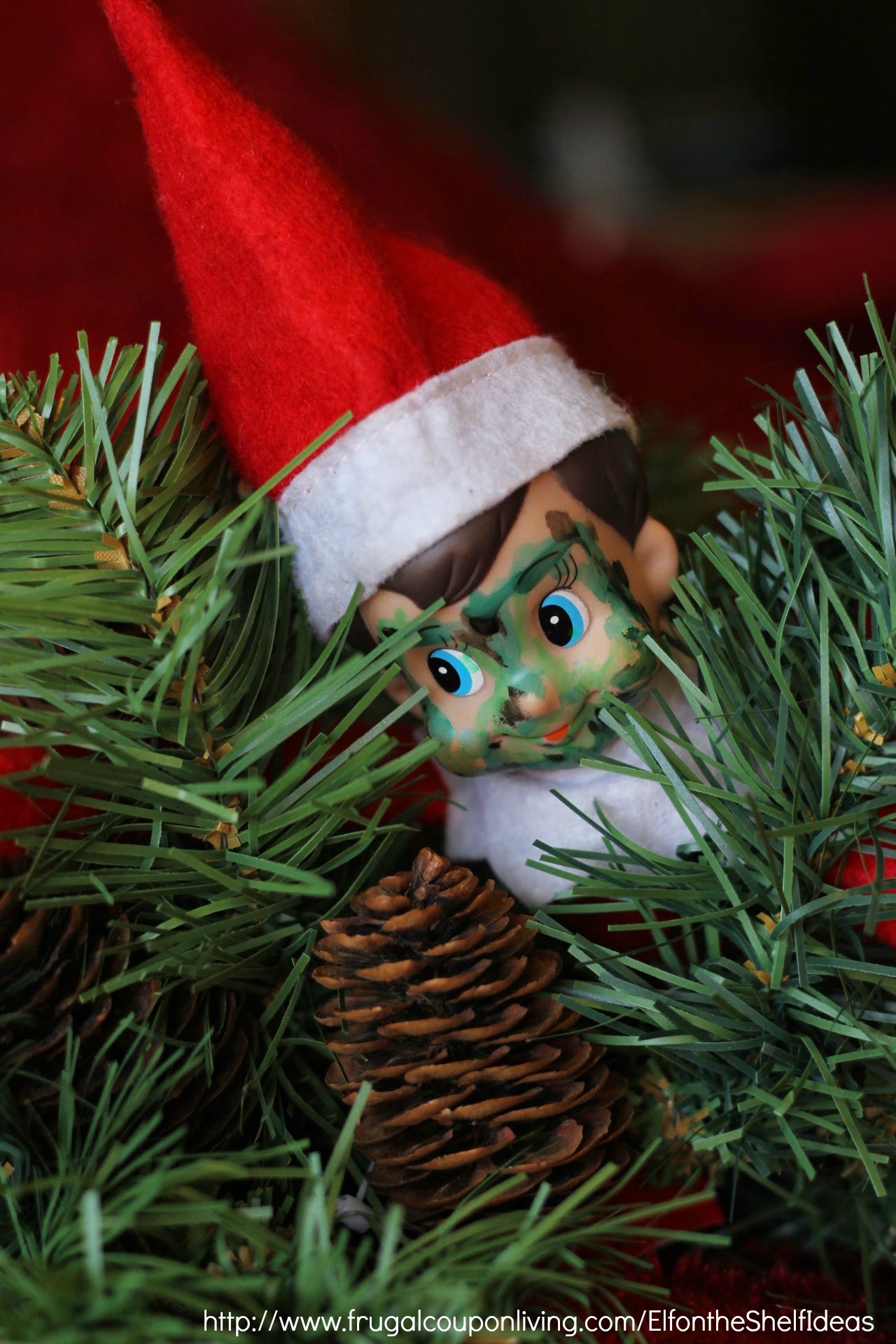 Elf On The Shelf Ideas - Elf Is Camo In The Christmas Tree